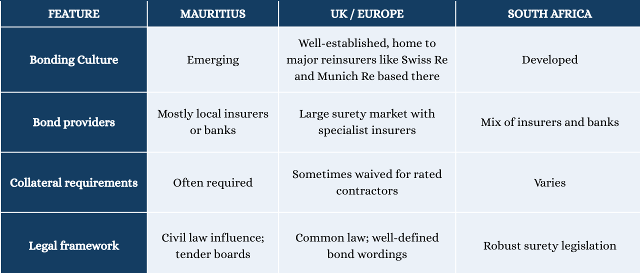 So, when Mauritian contractors bid for these projects, bonds are not optional, they are embedded in the legal DNA of the contract. Overlooking this requirement places local firms at a disadvantage when competing regionally or internationally.